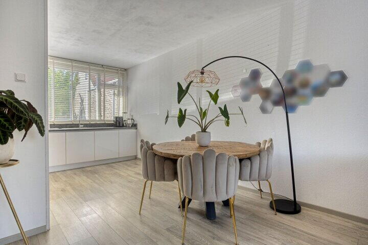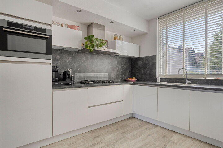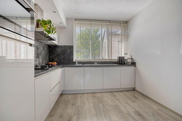 Een van de absolute eye-catchers van deze woning is de schitterende keuken. Deze is van alle gemakken voorzien en vormt een geweldige plek om culinaire hoogstandjes te creëren en tegelijkertijd te genieten van gezellige momenten met vrienden en familie.