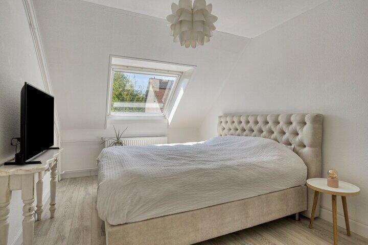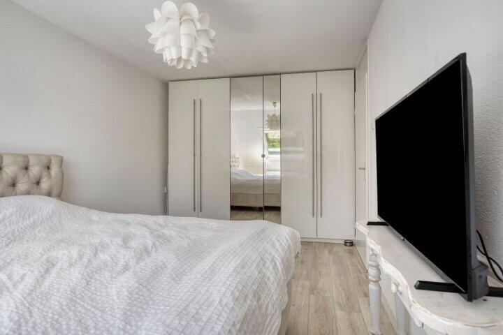 De woning beschikt over drie kamers, waaronder twee zeer royale slaapkamers, die ideaal zijn voor een klein gezin of als thuiskantoor. De moderne indeling zorgt voor een fijne sfeer en de grote raampartijen voor een optimale lichtinval.
