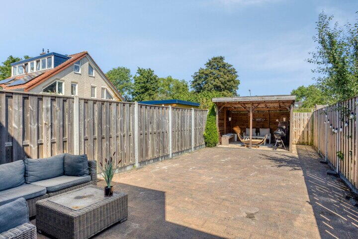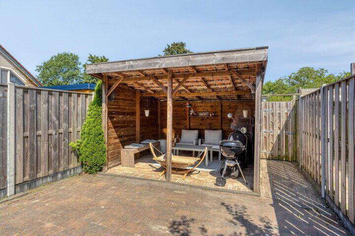 Stap buiten en u vindt een fraaie tuin met een gezellige overkapping. Dit is de ideale plek om te relaxen in de zomermaanden, te genieten van een barbecue of gewoon te ontspannen met een goed boek. De tuin biedt voldoende ruimte om te spelen of te tuinieren, en is omheind voor extra privacy.